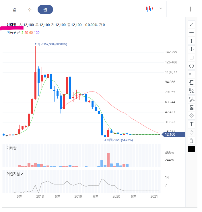 신라젠,,, 그야말로 15배까지 오른 전적이 있는 종목...