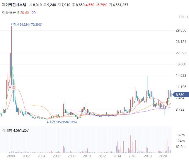 제이씨현시스템... 2000년도에 최고가를 봐라,, 저 때 잘 나가던 종목이었다,,,