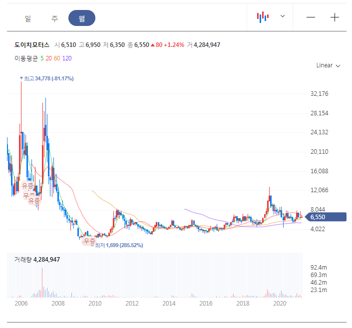추천 시작일 - 6550원,,,,코로나 당시 최저가로 부터 많이 오르지 않았네,,, 이상타?? 하여간 수상한 주식인 듯??!!