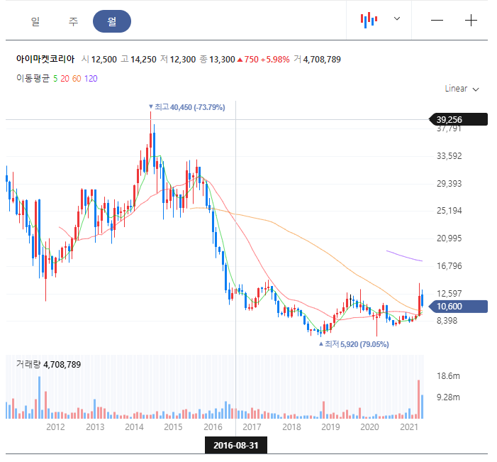 20210807 - 종가 12,300원입니다,, 형님격인 인터파크에 비해서 인기가 없네요,,,
